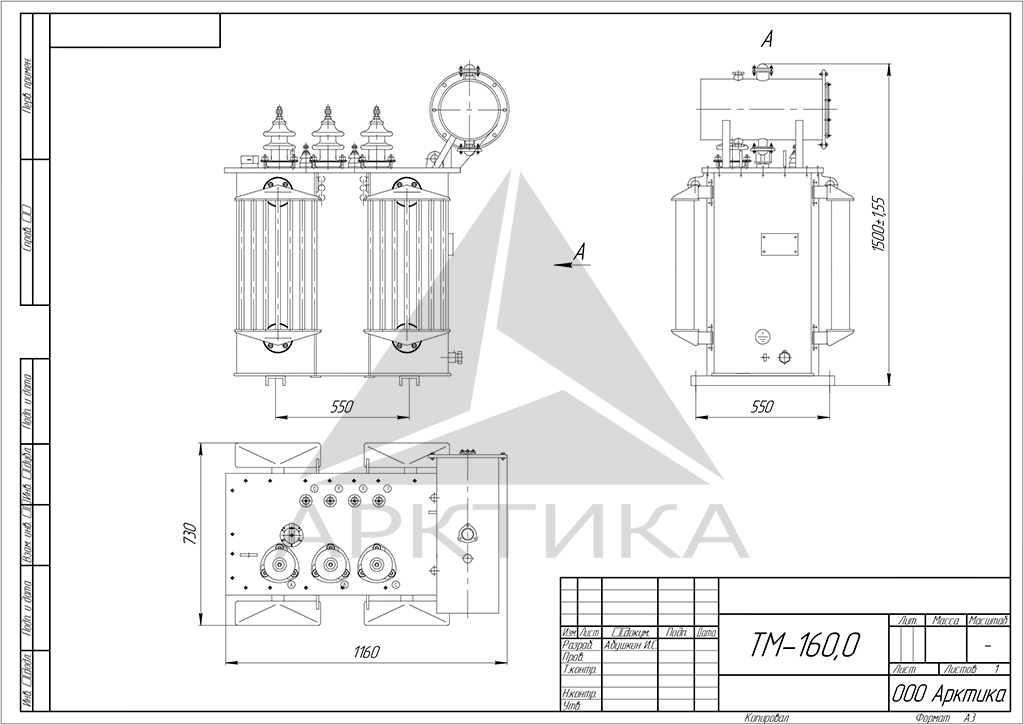Силовой масляный трансформатор ТМ-160 мощностью 160 кВА с маслорасширительным баком предназначен для понижения напряжения с 35кВ; 20кВ; 10кВ; 6кВ; до 0,4 кВ. Производство следующих моделей: ТМ - 160/6-0,4; ТМ-160/10-0,4; ТМ-160/20-0,4; ТМ- 160/35-0,4.